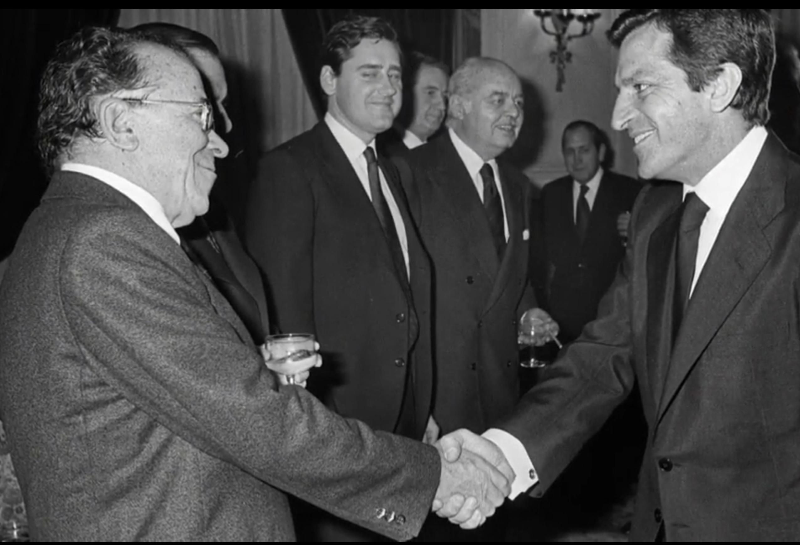Un symbole du « consensus » : la poignée de main entre le leader communiste Santiago Carrillo (à gauche) et le Premier ministre phalangiste Adolfo Suarez le 22 décembre 1976.
