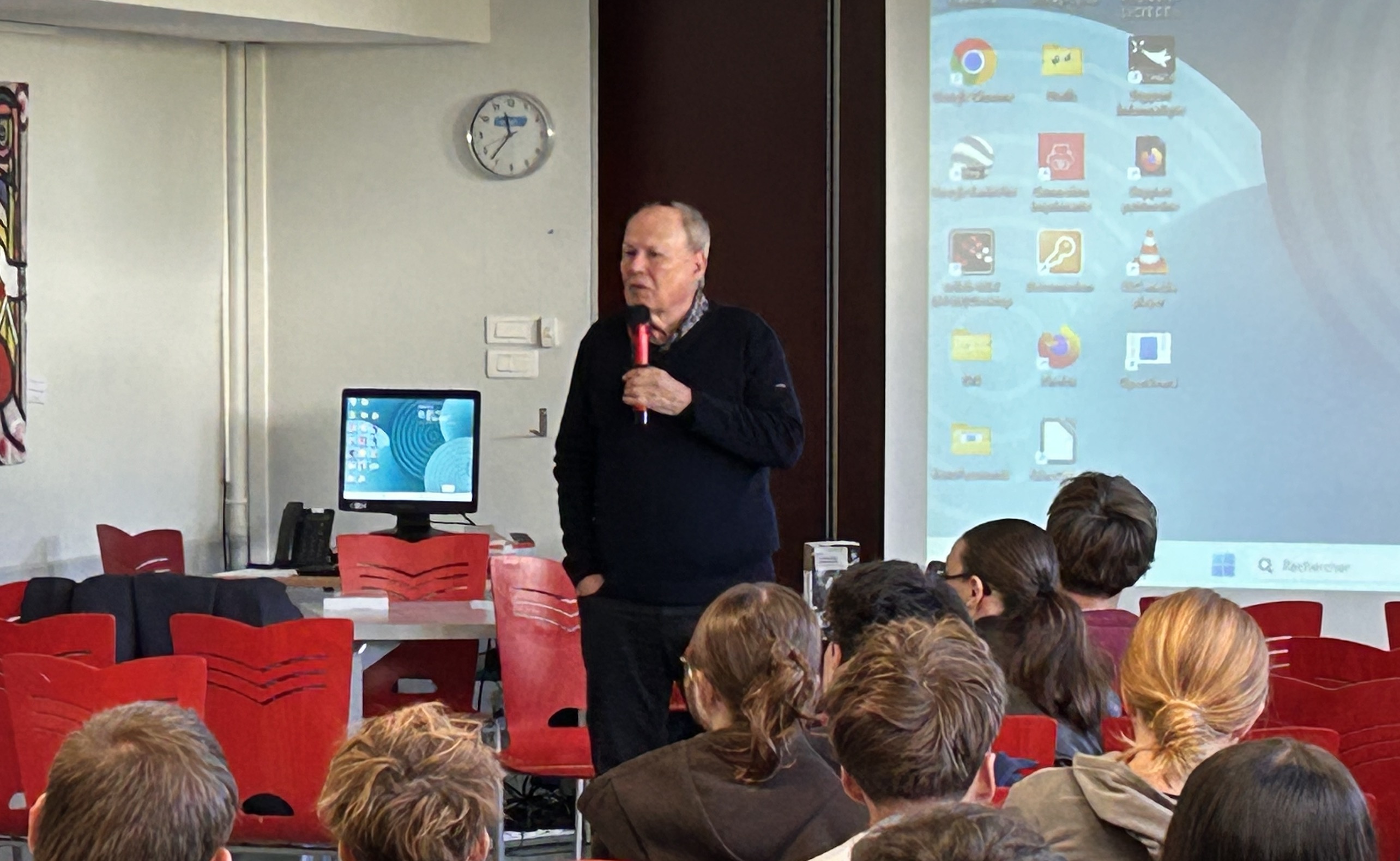 Séance en salle polyvalente : rencontre avec l'historien Jean-Yves Guengant, ancien proviseur du lycée (2004-2015). Il vient nous parler de son dernier livre, Le Kommando de Landerneau (éditions Skol Vreiz, 2025), sur les auxiliaires bretons de la Wehrmacht pendant l'été 1944, juste avant la libération de la Bretagne par les Américains.