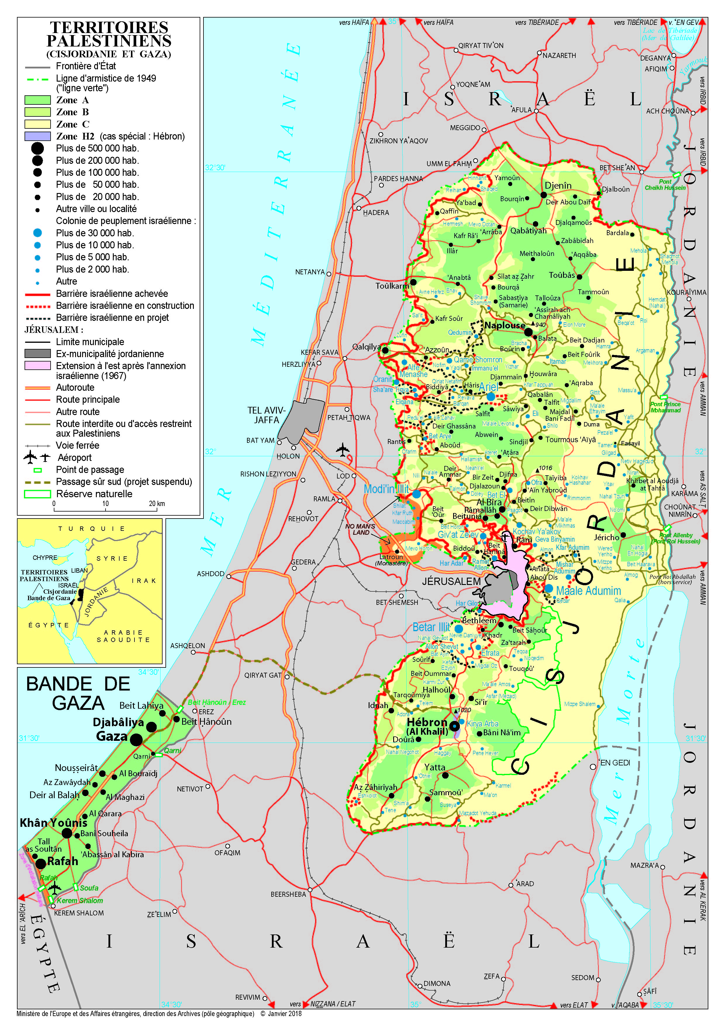 Carte des territoires palestiniens sur le site du Ministère des Affaires étrangères.