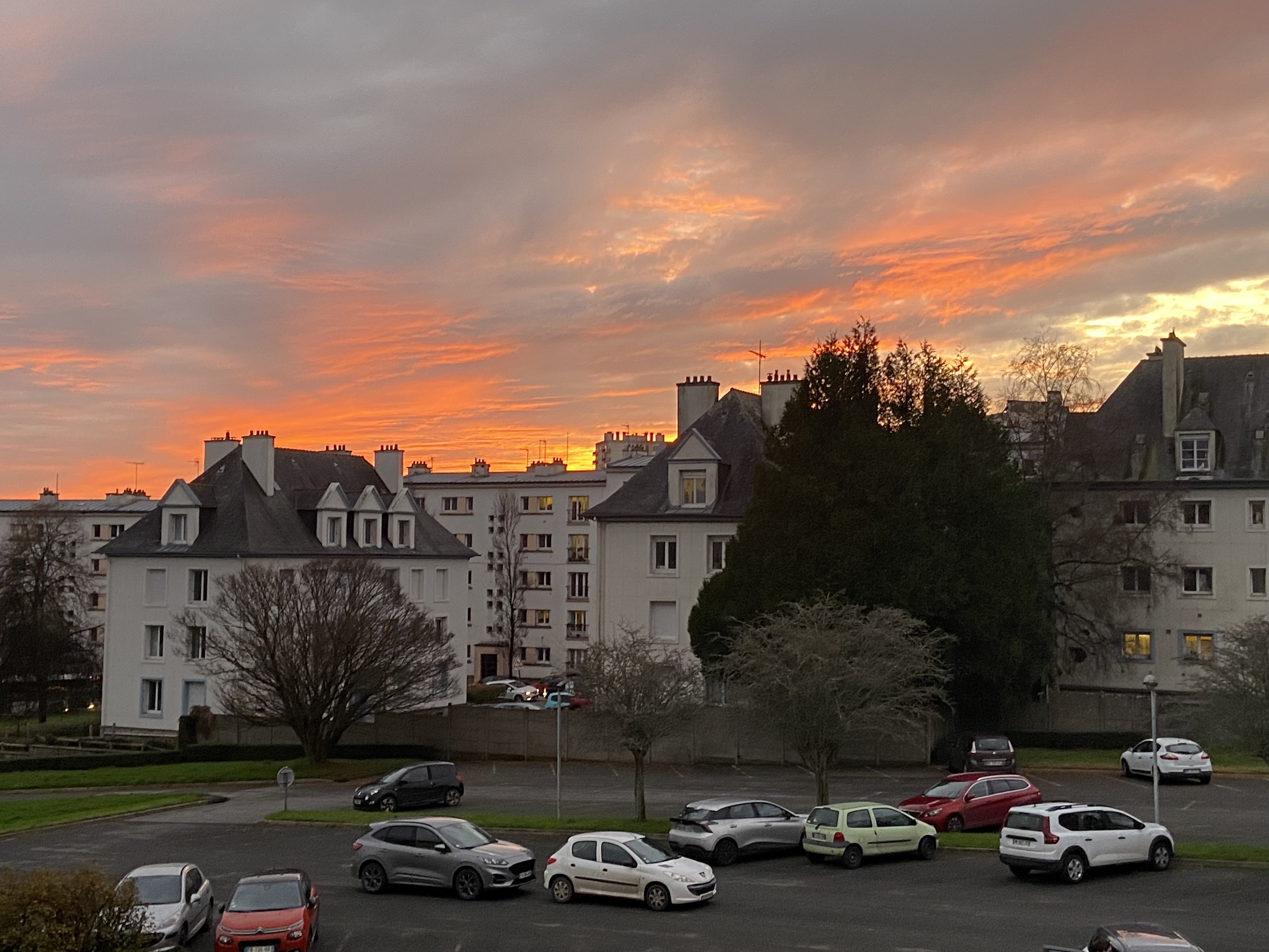 Le parking du lycée vu de la salle 225 le vendredi 12 décembre 2025 à 17h35.