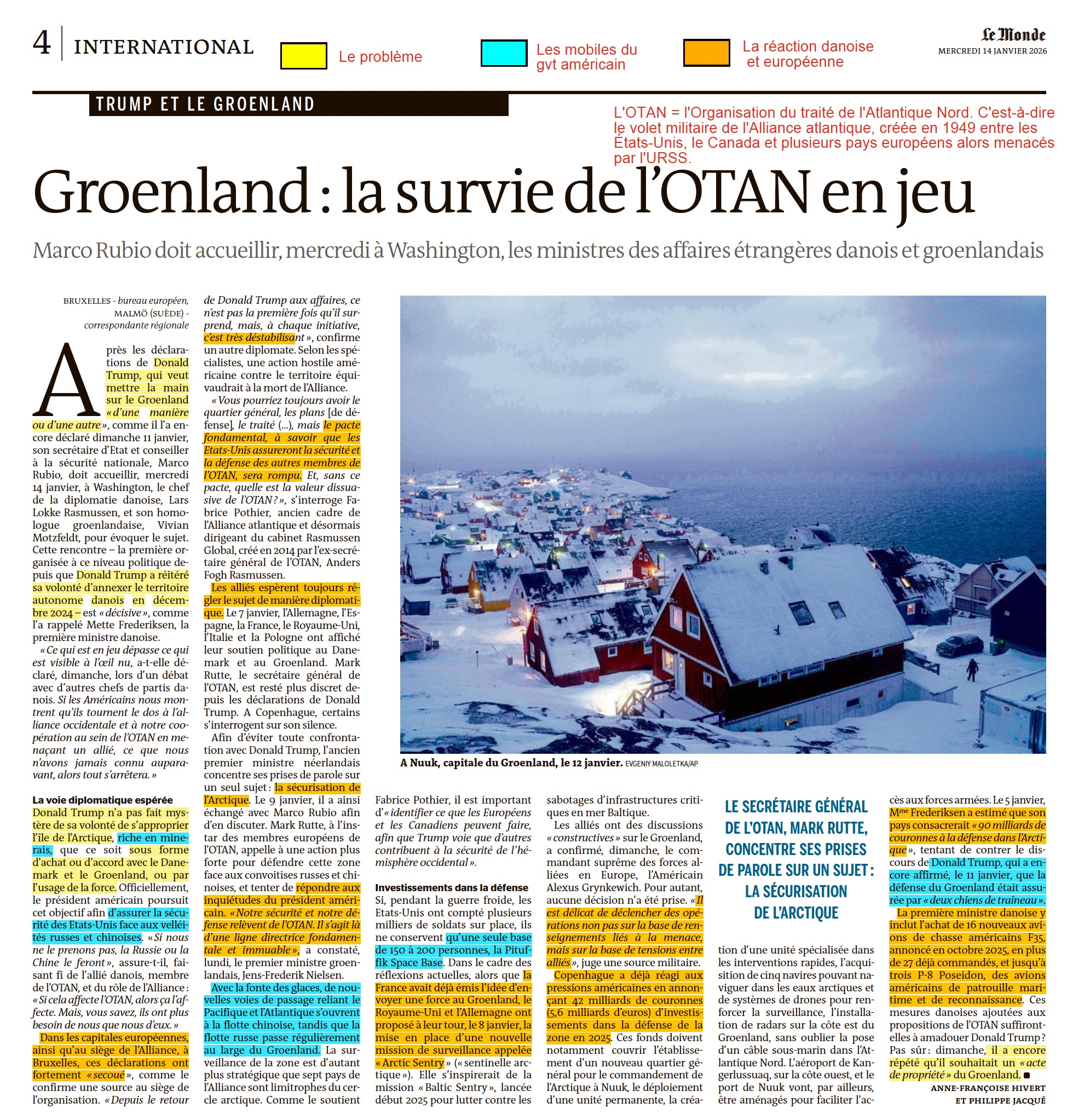 ❑ Lecture analytique de l'article sur le Groenland.