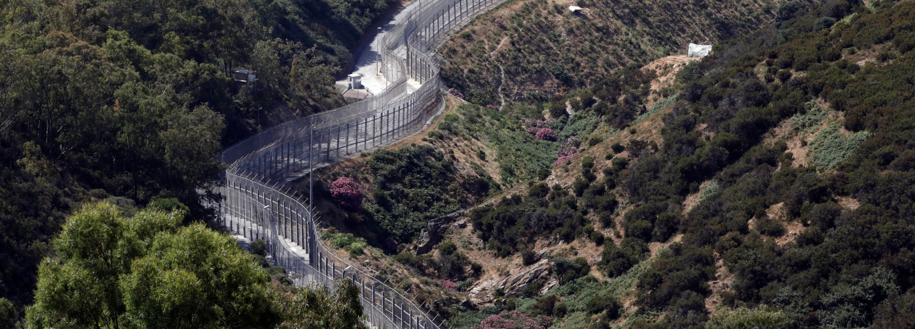 Une frontière extérieure de l'Union européenne : à Ceuta, « préside » (possession) espagnol en terre africaine. Les murs et barbelés sont destinés à empêcher l'afflux de migrants africains venus par le Maroc. Cette frontière à la fois visible et brutale ne correspond certainement pas à l'image que l'Union européenne veut donner d'elle-même : un espace de liberté, respectueux des droits de l'homme. Cette frontière est aussi l'expression du clivage nord-sud, à l'instar de la frontière États-Unis-Mexique ou du mur de séparation entre Israël et les territoires palestiniens.