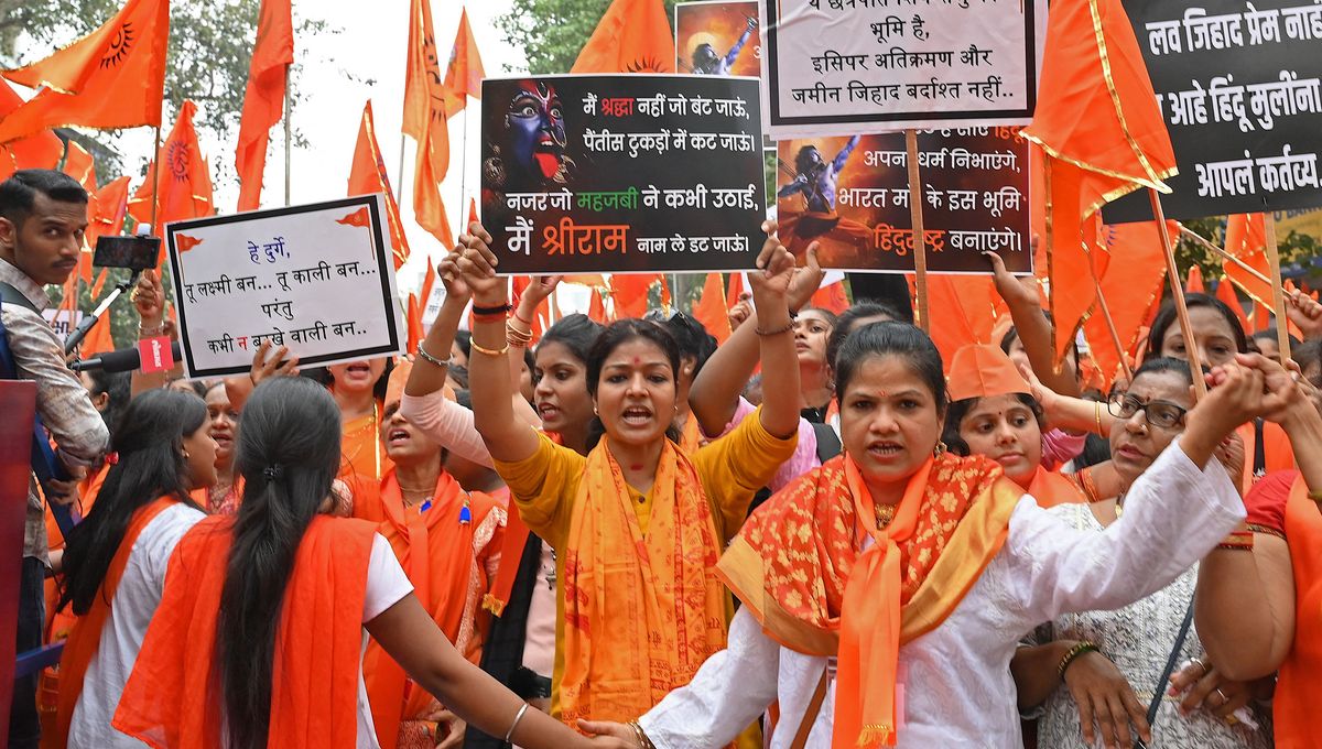 Une manifestation de femmes hindoues contre les musulmans à Mumbai, le 29 janvier 2023.